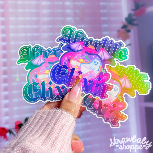 Afterlife Elixir Ghost Bottle Sticker - Die Cut Sticker - Handmade Holographic Sticker