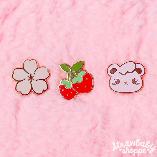 Kawaii Strawberry Sprinkle Pins - Red and Pink Strawberry Mini Enamel Pin Set